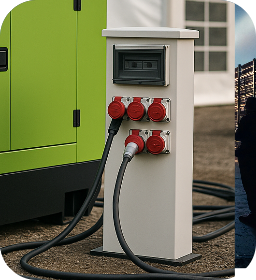 If you want a ‘plug in and play’ sustainable power source then a hybrid generator may be the answer. These generators come with a fully integrated battery store that kicks in when energy demand is sufficiently low. Reduced engine run hours means reduced CO2 and reduced air pollution. You also get silent running power when the battery kicks in.